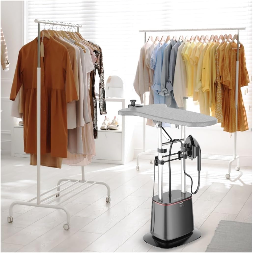 - ضغط البخار: ضغط للبخار يبلغ 7 بار للبخار عالي الضغط، مما يضمن إزالة التجاعيد بشكل فعال وتجديد الملابس.